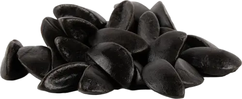 socker, glukossirap, gelatin, lakritsextrakt, vegetabilisk olja (kokos, raps), ytbehandlingsmedel (E901), aromer (anisolja, vanillin), färgämne (E153). Näringsinformation: Per 100g. Energi: 1478kJ / 353kcal / Fett: <0.5g / Varav mättat fett: <0.5g / Kolhydrater: 80g / Varav sockerarter: 58g / Protein: 7.2g / Salt: 0.09g.