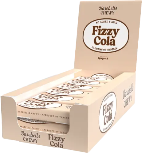 Proteinbar med smak av cola och överdrag med vit choklad (25%). Innehåller sötningsmedel och naturligt förekommande socker. Överdriven konsumtion kan ha laxerande effekt. Utan palmolja.