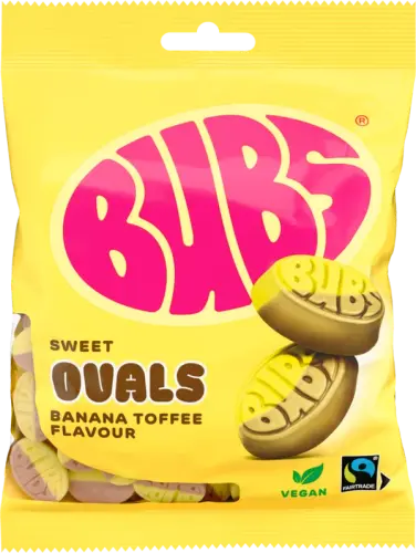Tillgänglighet: Finns i lager 7 st BeskrivningförBubs Banana Toffee Ovals 90g x 12st