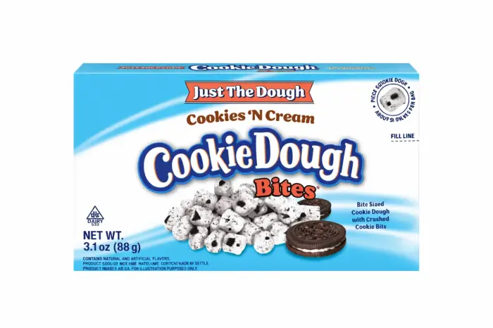 Cookie dough på bio-vis! Just The Dough Cookie Dough Bites Cookies 'N Cream är kakdegsbitar med cookies and cream-smak - som Oreo fast i fryst cookie dough-format. Små frusna bitar av kakdeg med krossade kakbitar inuti. Perfekt för dig som älskar cookie dough och Oreo-smaker! 🍪🎬