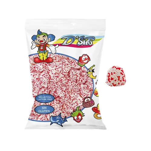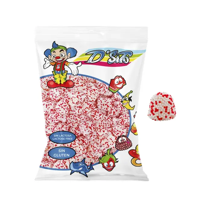 Jordgubbskräm i björnbärsform! D'Sito Blackberries Strawberry Cream är gelégodiset format som björnbär med mjuk jordgubbskrämgelé inuti täckt med pärlsocker. Mjuka, söta och krämiga - laktosfria och glutenfria. Perfekt till kalas och fester! 🍓💗