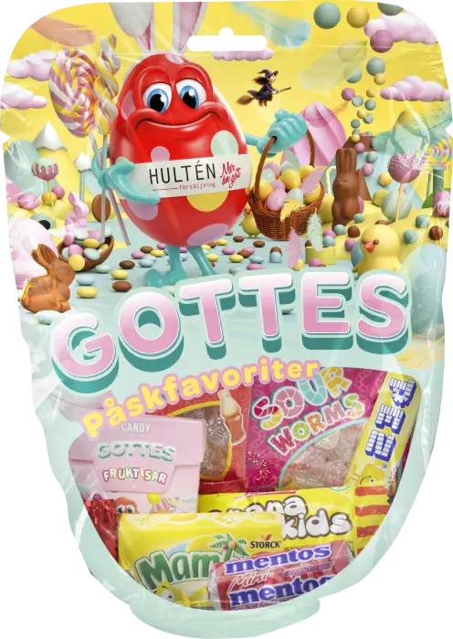 Låt påsken bli extra festlig med Gottes påskfavoriter! Gotte har noggrant valt ut sina favoriter och fyllt påsen med småförpackat godis i olika smaker. En härlig påse som passar både stora och små. Perfekt till påskjakten.