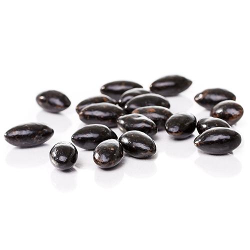 Socker, glukossirap, mjölk, kakaosmör, Vegetabilisk olja(RSPO-certifierad palm-/palmkärnolja, sheaolja), rålakrits, helmjölkspulver, kakaomassa, skummjölks-pulver, ytbehandlingsmedel (gummi arabicum, shelllack), ammoniumklorid, emulgeringsmedel (rapslecitin, mono- och diglycerider av fettsyror), salt, färgämne (vegetabiliskt kol), aromer. Kan innehålla spår av nötter. Chokladen innehåller >35% kakao och >15% mjölkpulver. Innehåller lakrits, personer med högt blodtryck bör undvika för högt intag. Näringsinnehåll /100g: Energi 1879kJ/447kKal, Fett 19g varav mättat fett 11g, Kolhydrat 68g varav sockerart 49g, Protein 1,8g, Salt 0,1g. Förvaras bäst torrt 15-20C