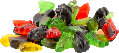 Haribo Vampyrer är den tama vampyren med lakritssmak och fruktgummi som är här för att ge ren glädje – inte bara för läskiga stunder. Ta en tugga innan de gör det! Perfekt kombination av lakrits och fruktgummi i rolig vampyrform. Gott, läskigt och kul på samma gång!