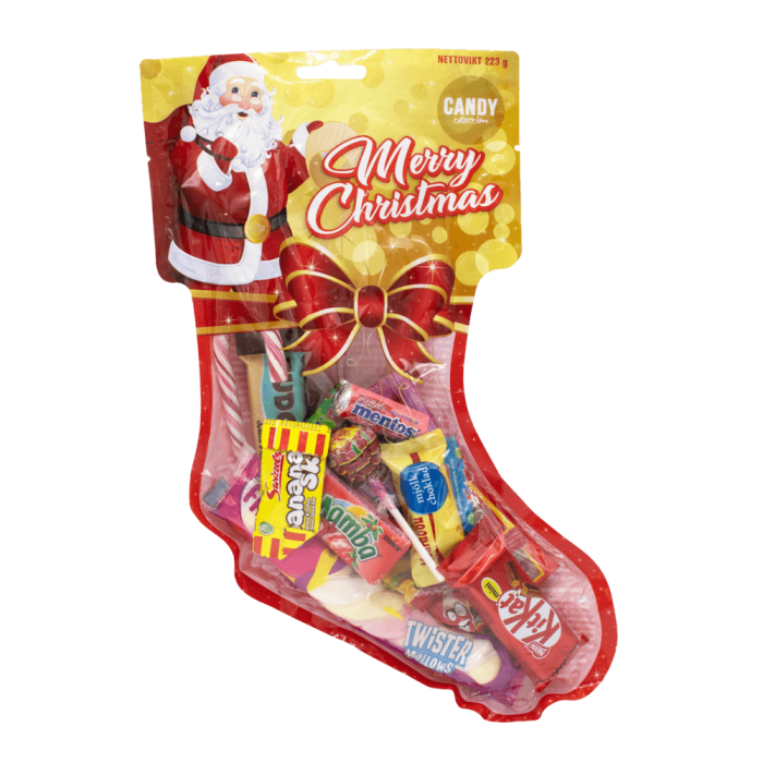 Julstrumpa fylld med godis är en storsäljare fylld med många klassiska supergoda varumärken och en hög andel julkonfektyr. Perfekt att hänga i granen, på den öppna spisen eller på sänggaveln. En riktig julklassiker som både barn och vuxna älskar. Fylld med favoriterna som gör julen komplett. Helt enkelt perfekt och genialisk!