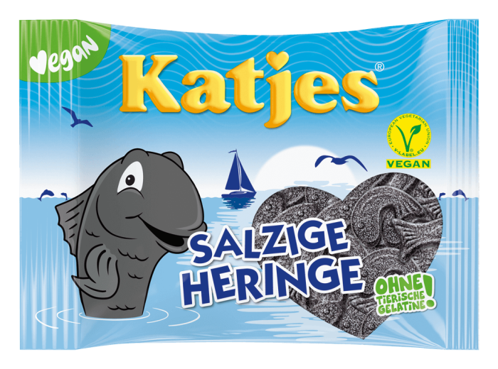 Vilken fångst! Katjes Salzige Heringe är härligt salta veganska lakritsfiskar som du kan fånga så många du vill av. Raffinerade med ammoniaksalt kommer dessa läckra små fiskar att glädja alla äkta lakritsfantaster. Ryktet säger att våra sötsalta sillar är de bästa i världen. Kryddig mjuk lakrits i perfekt fiskeform - öppna, doppa i och njut! 100% veganska och fria från animaliskt gelatin. En av de mest populära produkterna i Katjes-familjen!