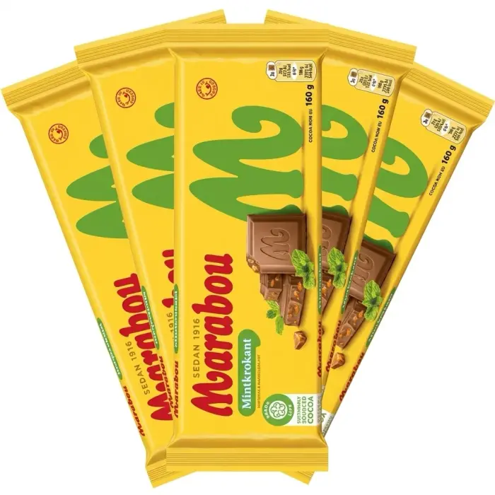 Tillgänglighet: Finns i lager 5 st BeskrivningförMarabou Chokladkaka Mintkrokant 160g x 5st