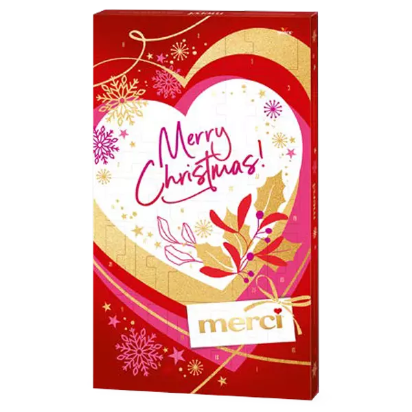 24 små ögonblick av lyx innan julafton! Merci Adventskalender låter dig räkna ner julen med små, gyllene tempelnycklar till chokladhimmelriket. Varje lucka gömmer inte bara en chokladbit utan ett litet "tack" till dig själv för att du överlevt ännu en dag i decembermörkret. En present till dig som älskar ordning men som också behöver lite söt belöning för att hålla vinterdepressionen på avstånd. När din kollega skryter om sin gin-kalender, nicka bara lugnt – du har valt vägen till genuin chokladlycka.