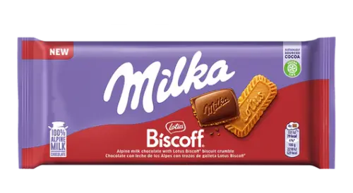 Milka Lotus Biscoff kombinerar krämig alpenmjölkchoklad med smulor av det ikoniska Lotus Biscoff-kexet – karamelligt, kryddigt och med den där omedelbart igenkännbara Biscoff-smaken inbakad i varje bit. Två älskade klassiker som äntligen hittat varandra. 🍫🍪