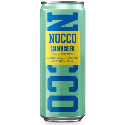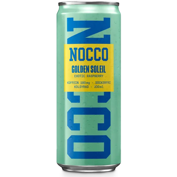 NOCCO Golden Soleil låter som en semester och smakar som en också – exotisk hallon med solglad energi och 180 mg koffein som kickar igång dagen på rätt sätt. Sockerfri och kolsyrad. Den enda burken som får gymmet att kännas som pool party. ☀️