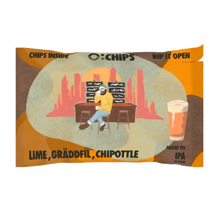 Ö-Chips IPA är chipsen som förstår öl på riktigt! Syrlig lime slår high-five med krämig gräddfil medan rökig chipotle lägger sig i och gör det hela farligt beroendeframkallande. Varje krispig tugga är designad för att matcha den beska, humlefyllda perfektionen i din IPA – tillsammans blir de ett mästerverk. Detta är inte bara chips till öl, det här är ölens själsfrände i chipsets form. Skål!