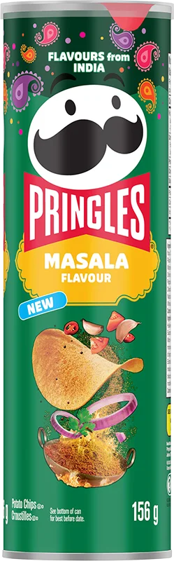 Pringles Masala är krispiga potatischips kryddade med gurkmeja, svartpeppar och en touch av vitlök – en mjuk, jordig kryddmix som värmer lagom och smakar mer för varje chips. Inspirerad av det asiatiska köket och omöjlig att lägga ifrån sig. 🌶️✨