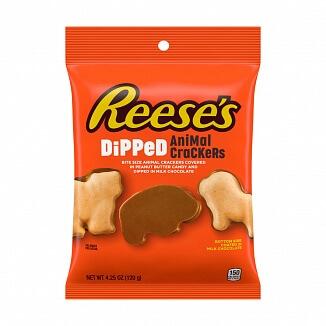 Reese's Dipped Animal Crackers kombinerar den klassiska smaken av Reese's Peanut Butter Cups med den nostalgiska crunchen från animal crackers. Varje animal cracker är doppad i läcker Reese's mjölkchoklad och toppad med små bitar av Reese's jordnötssmör, vilket ger en unik och oemotståndlig smakupplevelse.