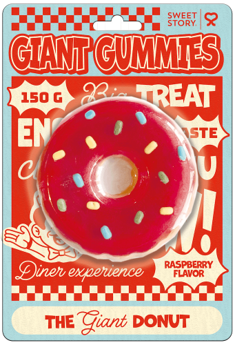 Sweet Story Giant Gummy Donut med hallonsmak är den mest galna munkbeslutningen du någonsin kommer fatta - och det bästa! En jättestor gummimunk som ser ut som en äkta donut med rosa glasyr men smakar söt hallon. Perfekt att dela med kompisar på kalaset eller äta själv medan du låtsas att det är frukost. Ingen känsla av dåligt samvete - bara ren munkglädje i gummiform!