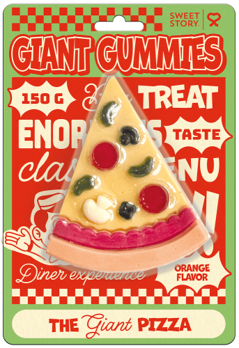 Sweet Story Giant Gummy Pizza är det mest galna pizzabeslut du någonsin kommer fatta - och det bästa! En jättestor gelegodispizza som ser ut som äkta pizza men smakar som godishimlen. Perfekt att dela med kompisar på kalaset eller äta själv medan du binger serier. Inga kalorier att känna sig skyldig över, inga ostbitar att torka bort från tangentbordet - bara ren geléglädje i pizzaform. Detta är pizza som frukostgodis är okej för!