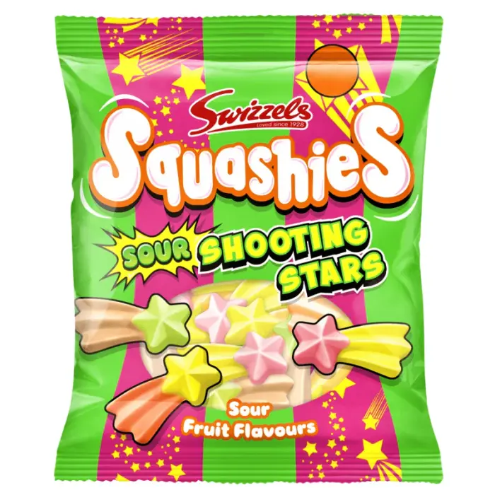 Mjukt, syrligt och fulladdat med smak – Squashies Sour Shooting Stars tar godisupplevelsen till nästa nivå.
