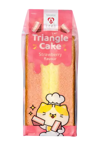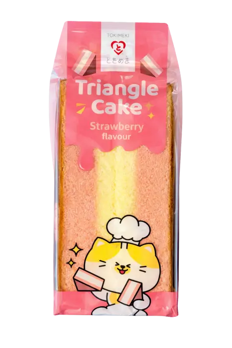 Trekantkake med jordbær! Triangle Cake Strawberry Flavour er den asiatiske kaken med søt jordbærsmak. Myk, luftig og rosa med fruktig jordbær - perfekt balanse mellom kake og bær. Perfekt som mellommåltid eller til kaffen! 🍓🍰