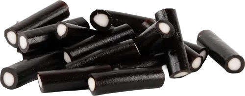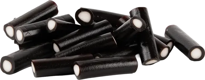 socker, sirap, glukos-fruktossirap, hvedemel/hvetemel/vetemjöl (GLUTEN), modifierad majs- och potatisstärkelse, helt härdat vegetabiliskt fett (palmkärna, kokos), fuktighetsbevarande medel (glycerol), lakrits, emulgeringsmedel (mono- och diglycerider av fettsyror), förtjockningsmedel (gummi arabicum), salt, pepparmyntsolja 0,1%, vegetabilisk olja (kokos, raps), ytbehandlingsmedel (carnauvabax), arom. Fyllning 60%. Näringsinformation: Per 100g. Energi: 1555kJ / 377kcal / Fett: 3.4g / Varav mättat fett: 3.1g / Kolhydrater: 82.0g / Varav sockerarter: 62.0g / Protein: 1.4g / Salt: 0.24g.