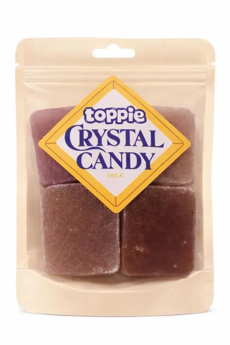 Kristaller med colakick! Toppie Crystal Candy Cola är det holländska kristallgodiset som smakar cola och ser ut som kristaller. Sockrade kubар med intensiv colasmak som smälter på tungan - lite tuffare och kantighare än vanligt godis. Perfekt för dig som älskar cola och vill ha något lite annorlunda än vanliga colaflaskor! 💎🥤