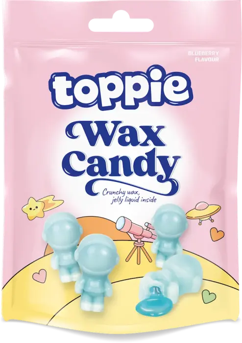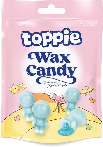 Astronauter med hemlig fyllning! Toppie Wax Candy Blueberry är de söta astronauterna med knastrigt vaxskal och geléartad blåbärsvätska inuti. Först biter du, sen exploderar smaken! Perfekt för barn som älskar både rymden och godis, eller vuxna som minns Wax Bottles från förr. Liten astronaut, stor smakupplevelse! 🚀💙
