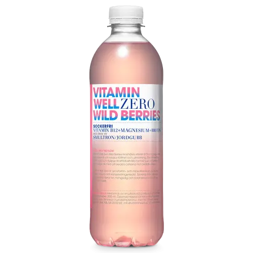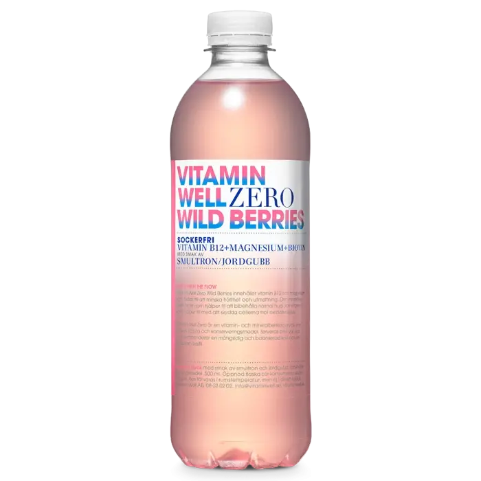 Vitamin Well Zero Wild Berries är den sockerfria varianten med smak av smultron och jordgubb – frisk, lätt och berikad med vitamin B12, magnesium och biotin. Hydrera smart utan socker och utan att kompromissa med smaken. Bärigt, fräscht och faktiskt nyttigt. 🍓🌿